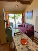 - dining room with small kitchen (with stove, microwave oven, washing machine)