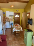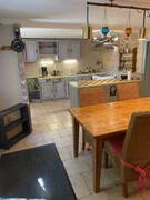 The house features a larger, fully equipped kitchen and a combined dining/living area